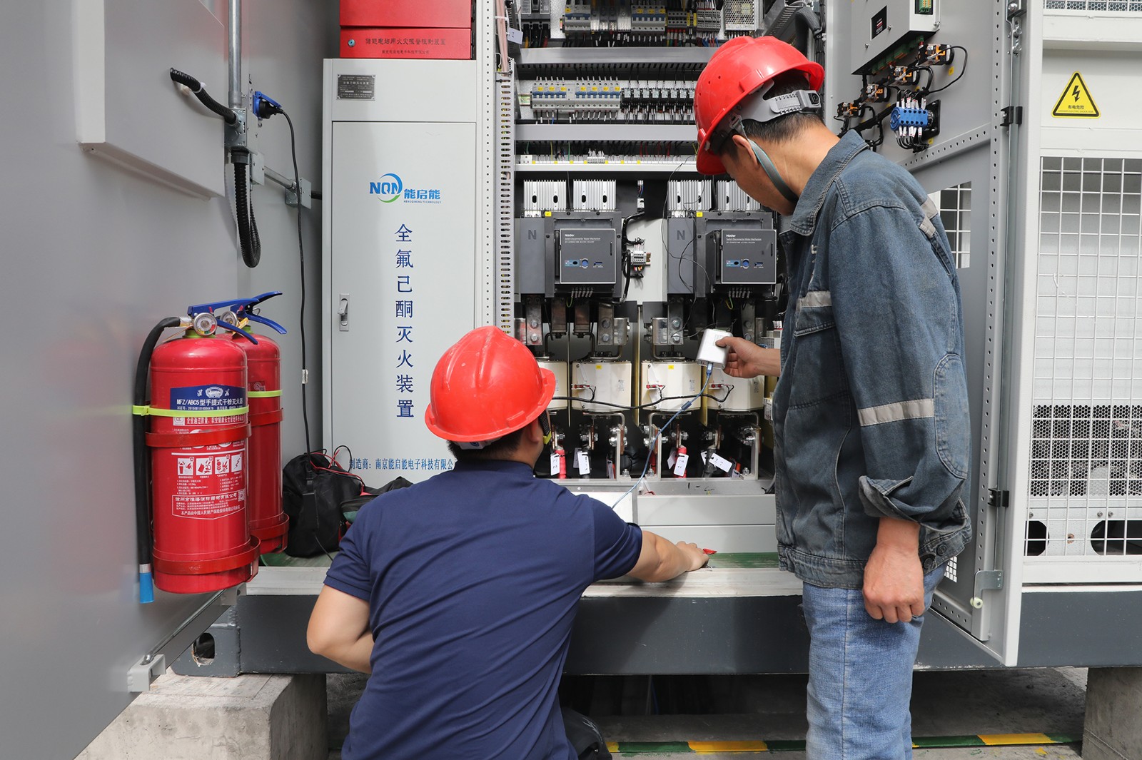 据介绍,作为控制系统的核心,调试中的储能管理系统为总控制系统,可依据策略控制让整套储能系统按需进行充放电或应急保电,实现对系统的精准把控。目前,该控制柜正紧锣密鼓地与现场“新世纪系统”进行数据对接,以便实时采集电站开关状态、主变功率等关键数据。后续,还将开展与电池舱、储能逆变器舱的通讯控制调试,达成对舱内所有数据的采集以及对整套储能系统的全面控制。