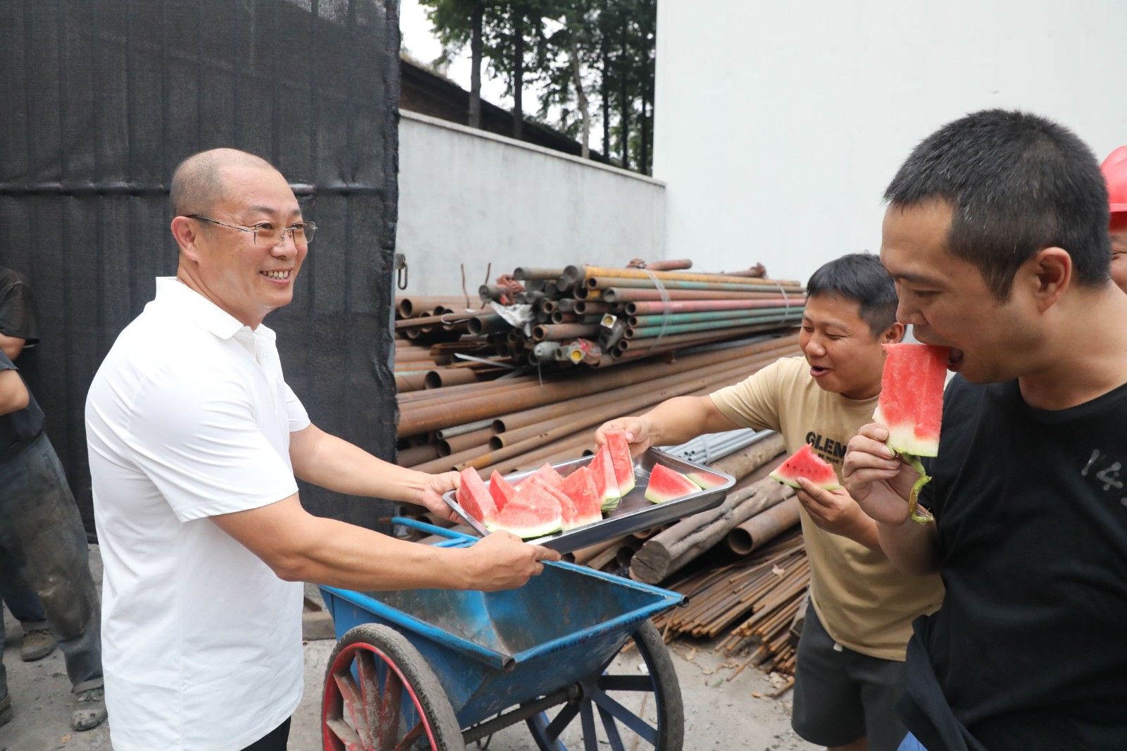 公司领导心系职工,深入生产车间,亲切慰问坚守岗位的干部职工。7月18日下午,党委副书记、总经理范勤英带领机关三支部的党员到1xbet平台机电队开展送清凉活动,亲手将西瓜、矿泉水递到职工手中“来来来,吃块西瓜解解暑!”并询问了解工作作息安排和防暑降温措施落实情况,反复叮嘱要求各级管理人员要科学排班,特别是户外作业务必避开高温时段,注意作业安全。
