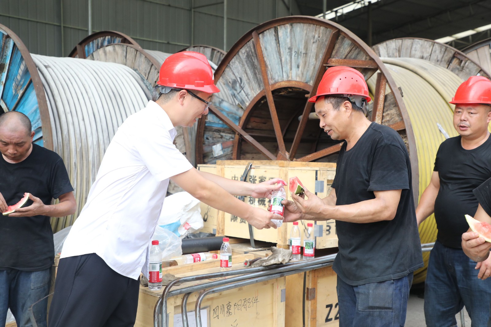 各级党支部、工会也积极组织开展送清凉活动,物资供销公司党支部不定期地为职工送去西瓜、矿泉水,每天熬煮清凉解暑的老鹰茶,配备充足的藿香正气水、人丹等药品,实行露天作业和高温作业环境弹性工作机制,灵活调整搬运班人力装卸工作业时间,除特殊情况外午后都不再卸货,还认真开展防火安全检查等。