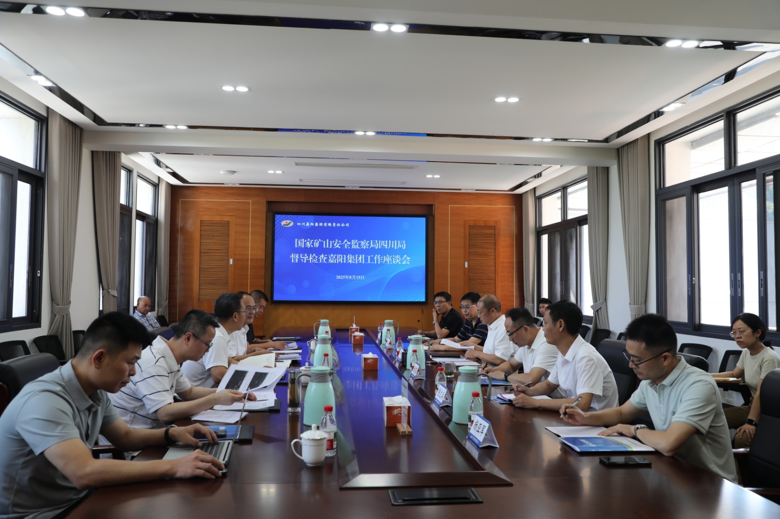 8月19日,国家矿山安全监察局四川局局长王其江一行督导检查1xbet网页版,乐山市应急管理局局长刘杨、犍为县副县长杨谦,市县相关部门负责人陪同督导,集团公司党委副书记、总经理范勤英,分管领导,煤矿矿长及相关矿领导参加督导。